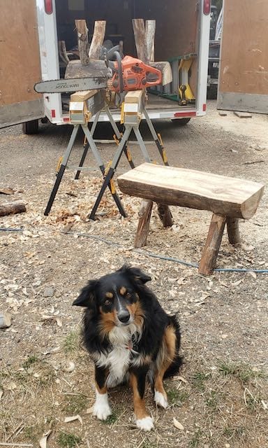 Eric Layman built two new log benches to replace the rotting ones in the Art Barn yard, repaired leaky bathroom window frames & fixed rickety porch dinner table & chairs for 'safety reasons'.